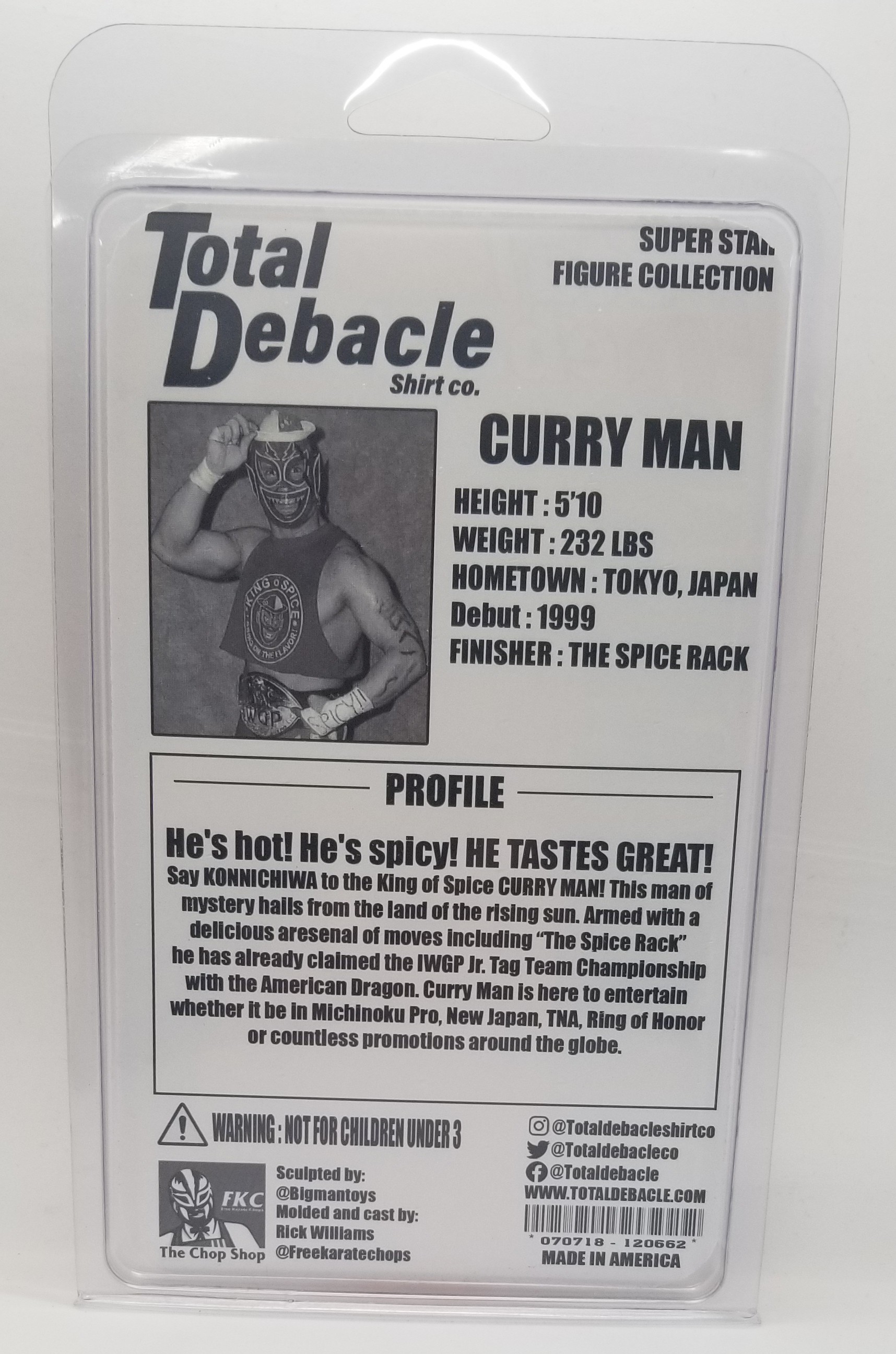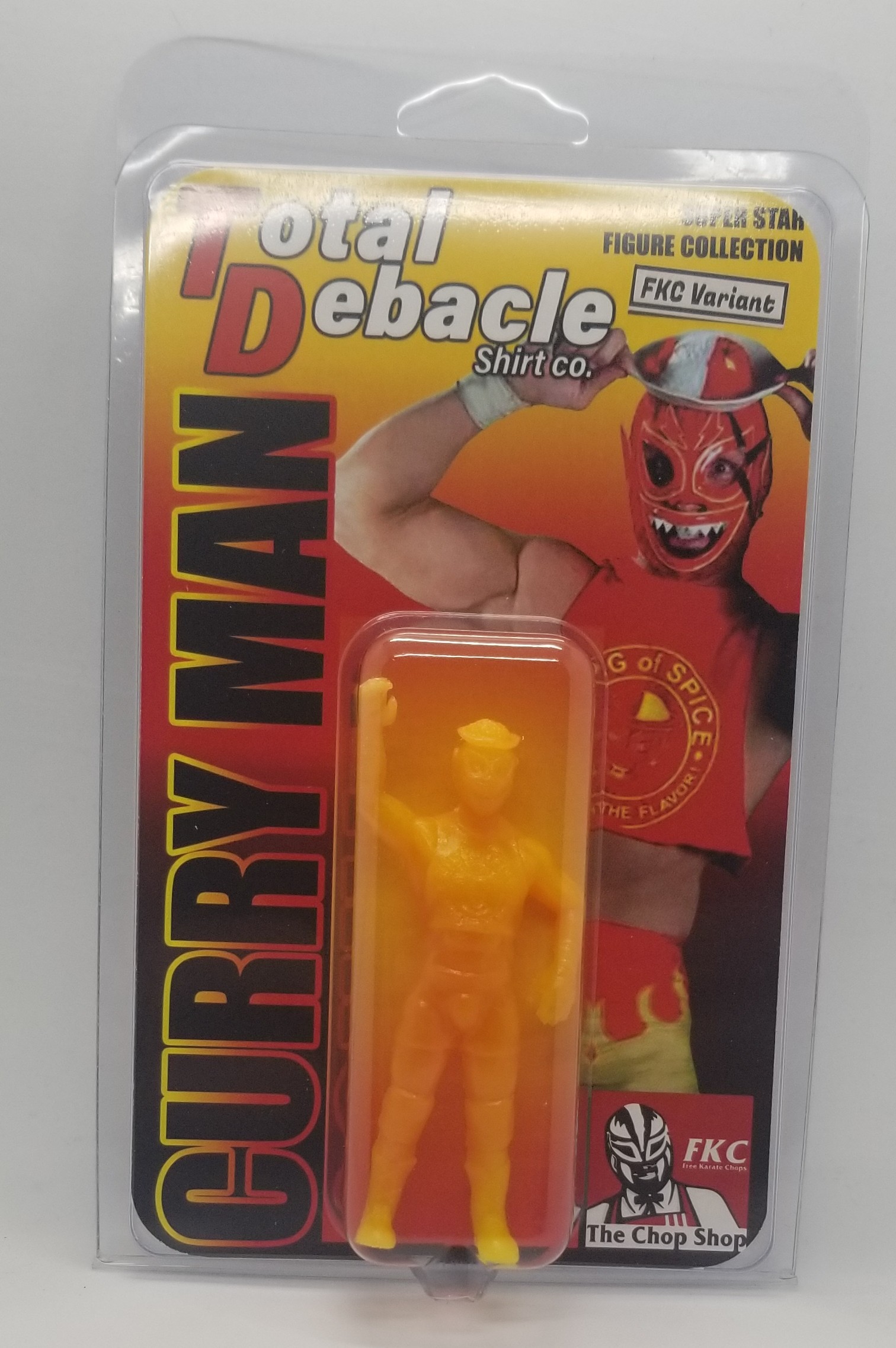 Official Curryman resin figure!! FKC variant of the Total Debacle figure. 3 inches tall in resealable clamshell packaging. Comes in 2 styles limited to 5 each.